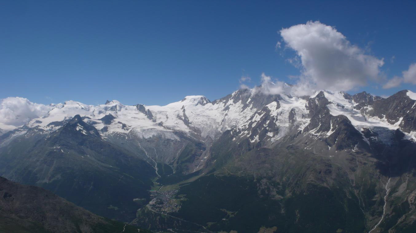 Aussicht auf die Mischabelgruppe sowie auf das Dreigestirn
